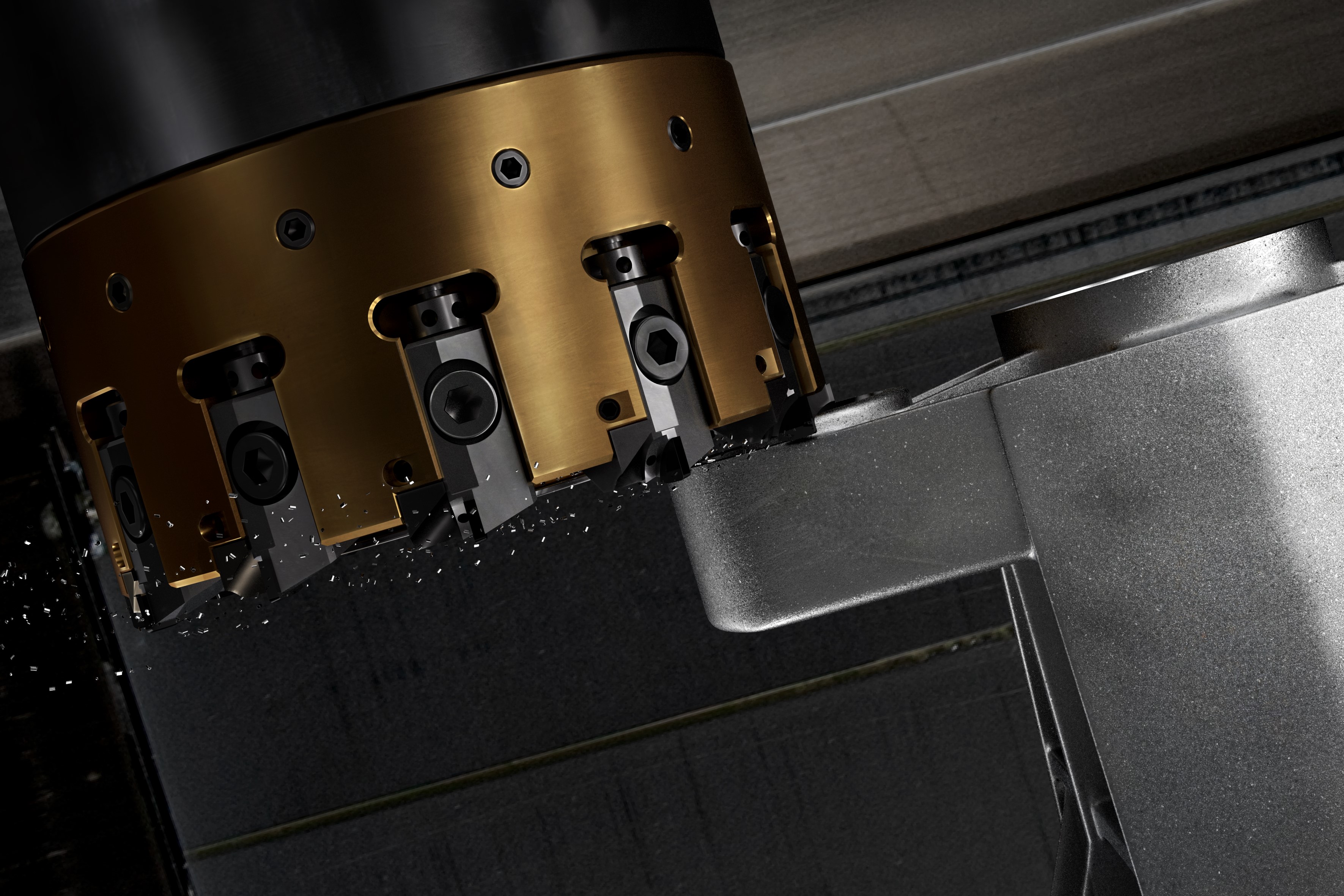 A case in point is the M5C90, an innovative cutter that combines roughing and semi-finishing into one tool. The M5C90 is a high-speed face-milling tool that is custom-made to eliminate lengthy set-up times at the customer facility. M5C90 works with a reduced number of teeth compared to conventional cutters, chiefly as a result of unique radial and axial insert positioning on its finishing row/inner diameter (no insert adjustment is required). This positioning ensures burr-free milling and optimum surface finish on cylinder heads, cylinder blocks, brake system parts and all aluminum components where wide cutter engagement can be achieved (not applicable on thin wall parts).