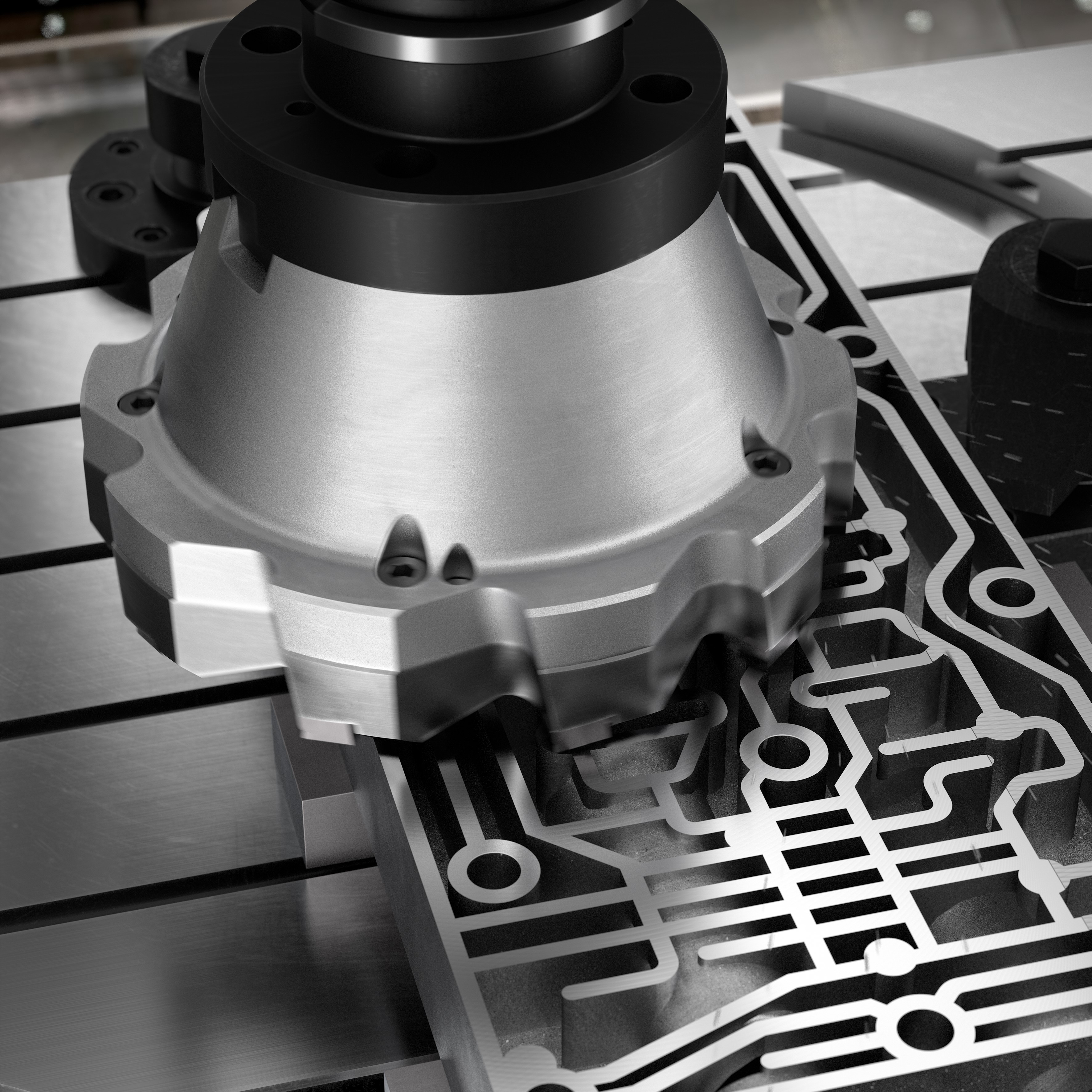 A range of thermal and mechanical properties makes for challenging machining when it comes to bi-metal materials. Existing milling cutters for this application are complex and require adjusting, resulting in compromised throughput rates. In addition, such tools often cause chipping on the GCI portions of the component.