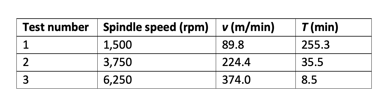 Table 1: Test results for milling 1018 steel with an uncoated carbide insert.