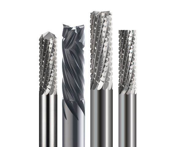 Solid carbide and CVD diamond-coated tools are available in compression, burr and special tip shapes, giving manufacturers the geometries needed for complex, composite parts. (Photo courtesy of Kyocera)