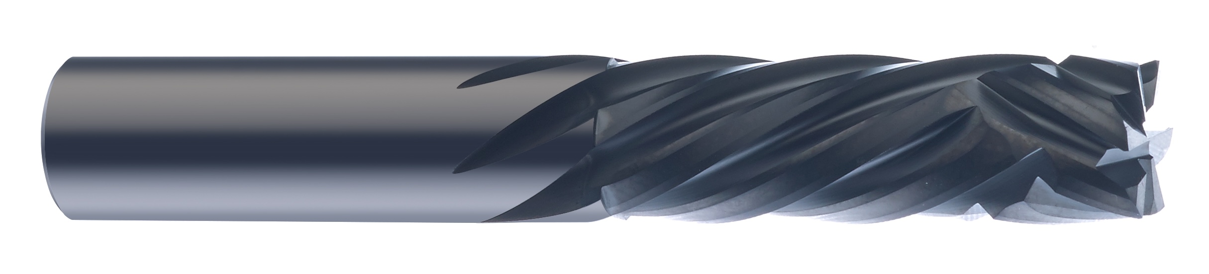 Compression-style endmills have an upcut helix at the bottom and downcut helix at the top. These serve to push the composite layers together during machining and keep the material intact. (Photo courtesy of Kyocera)
