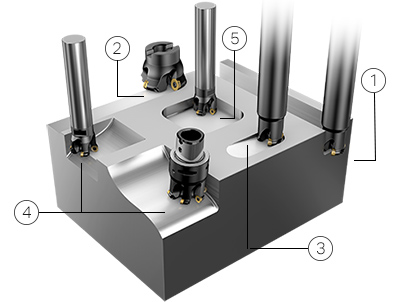 CoroMill® 745 is your first choice in roughing operations where light cutting action is required; such as vibration-prone or weak setups.