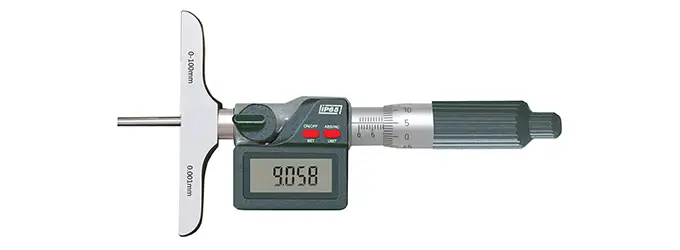 Introducing the new SPI certified electronic depth micrometer with interchangeable rods. Includes flat end rods for stable, flat contact on surfaces. The ratchet thimble stop feature provides an audible clicking sound for accurate measuring and prevents overtightening.